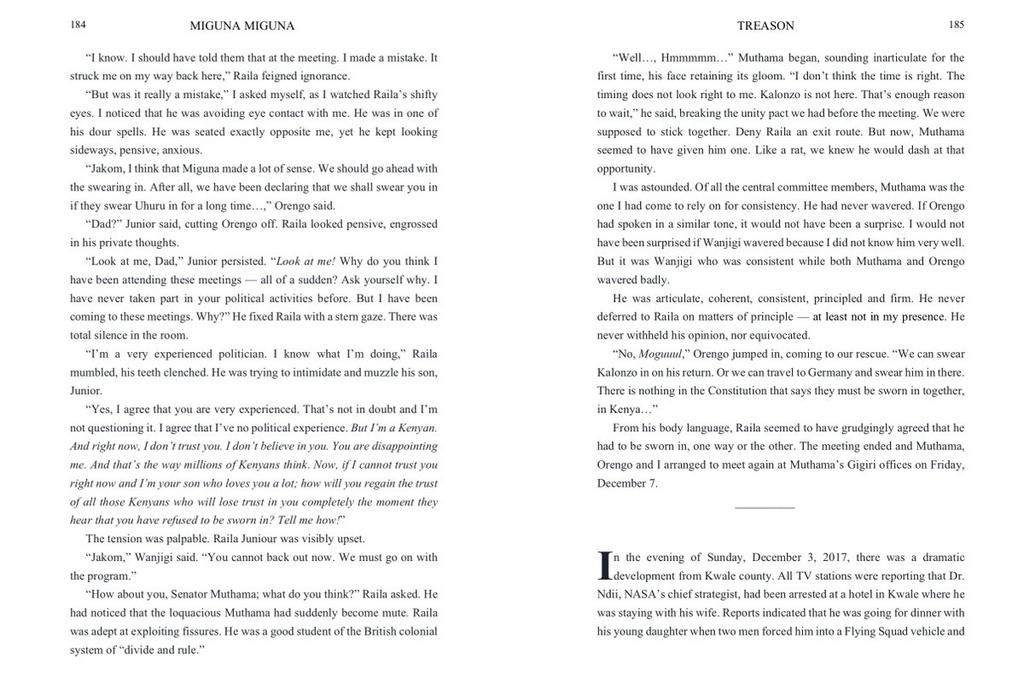 This is according to a new book, Treason, authored by lawyer Miguna Miguna who has given an insider account of the events that led to Odinga’s mock swearing ceremony on January 30th, 2018.