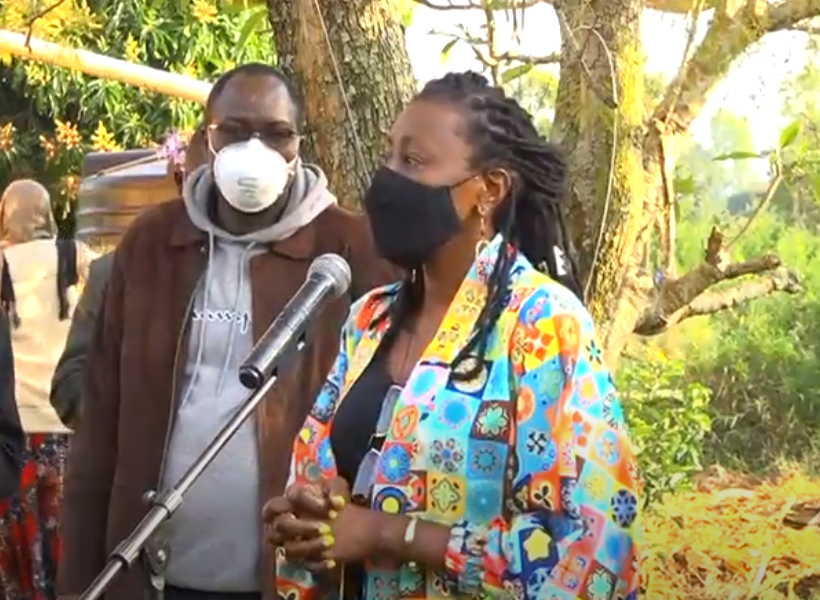 Actress and Radio Presenter Jacqueline Nyaminde alias Wilbroda on Monday addressed mourners during the burial of Charles Bukeko alias Papa Shirandula.