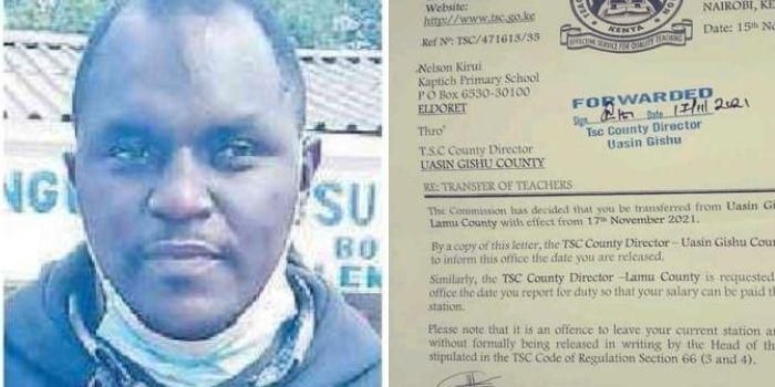 Nelson Kirui was pulled out of hospital where he had taken his wife to deliver, only to be informed that he had been transferred from Eldoret to Lamu.