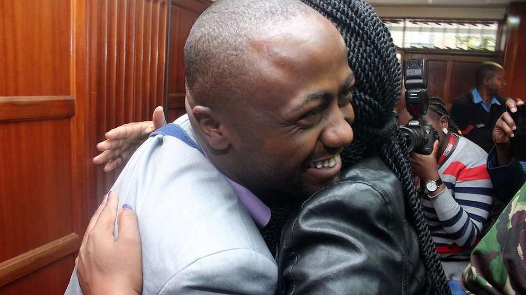 File image of Joseph Jowie Irungu hugging a female relative in court