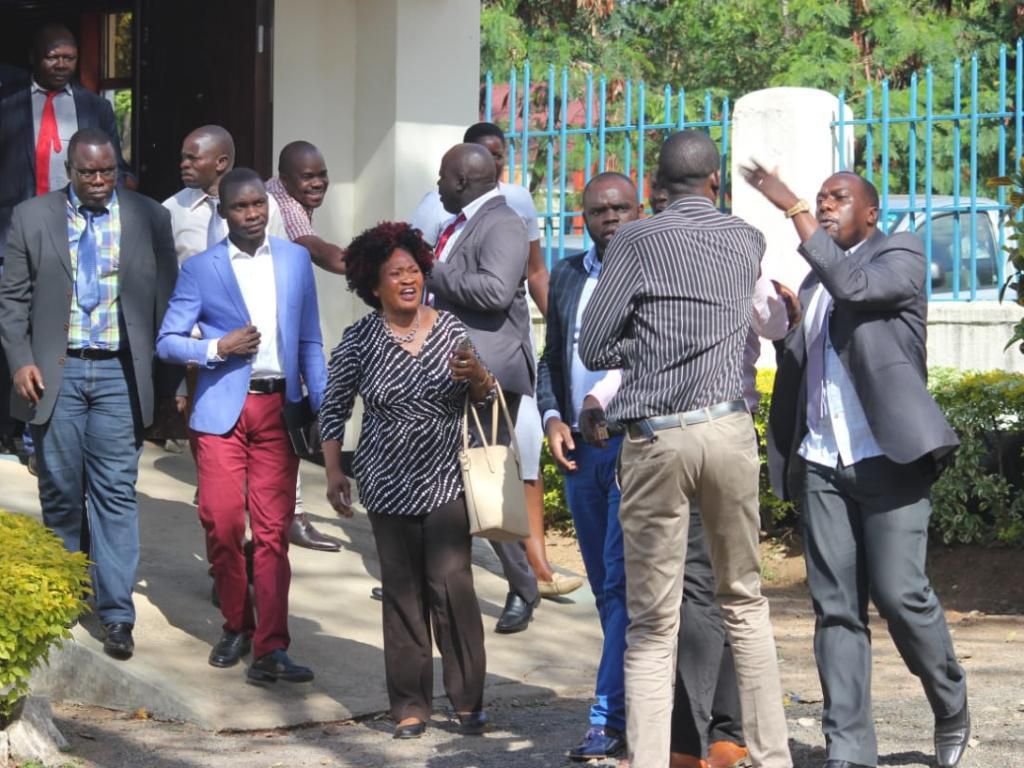 The County Assembly was turned into a boxing ring as the MCAs traded blows and one Ward Rep is was stopped by security officers as he attempted to run away with the mace.