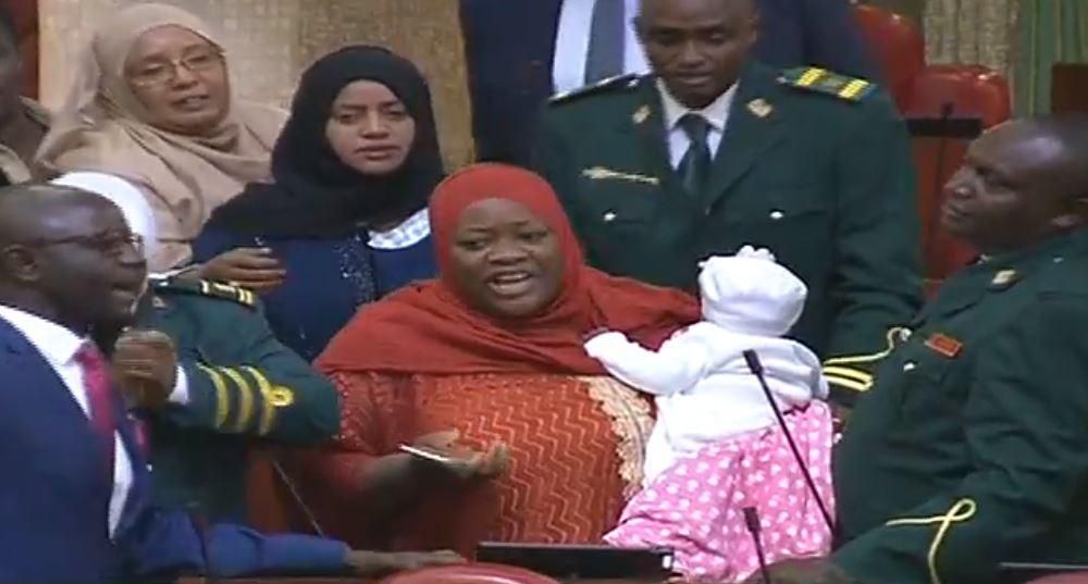Kwale Women Representative Zuleika Hassan was kicked out of the National Assembly after she walked into the chamber with a baby.