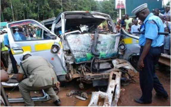 The accident happened when the driver of the 14 seater matatu lost control of the vehicle, ramming into the lorry that was parked by the road.
