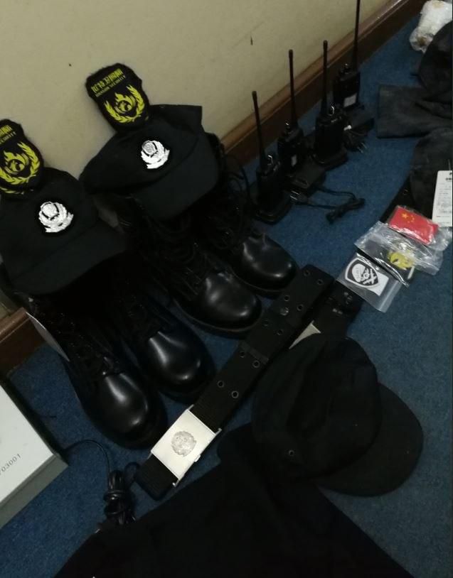 During the raid by police, several items which included; Radio Calls, Military uniforms, laptops and metal detectors among others.