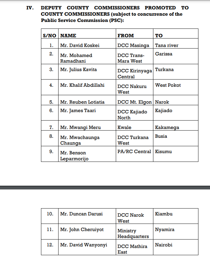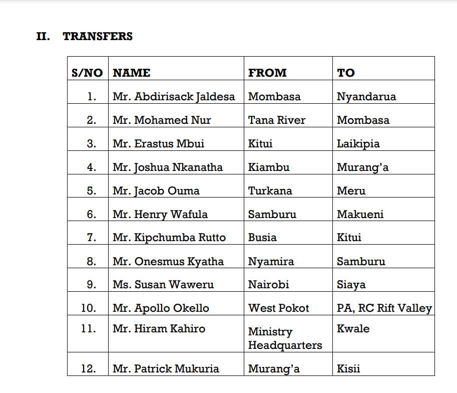 This reorganization, effective from 1st February 2024, is aimed at boosting service delivery across various national government administration cadres.