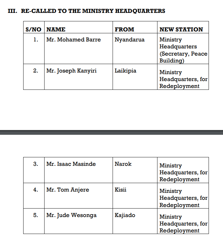 Interior CS Kithure Kindiki transfers county commissioners