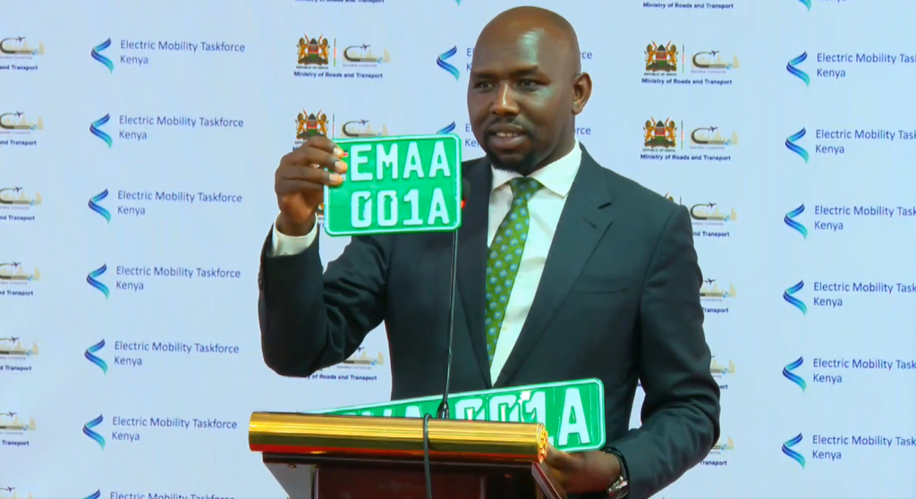 Transport Cabinet Secretary, Kipchumba Murkomen, has unveiled plans for green-coloured number plates designated for owners of electric vehicles (EVs) and electric motorcycles.