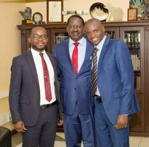 ODM leader Raila Odinga with Silas Jakakimba (left) and activist Sam Okemwa