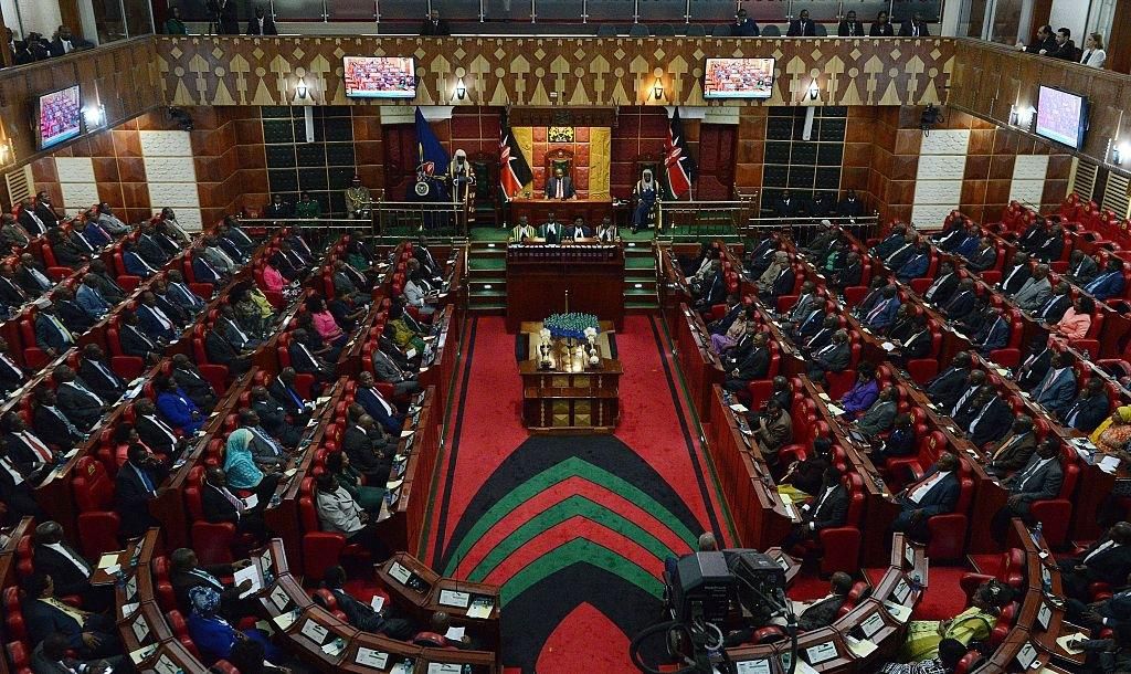 A general view taken on March 26, 2015 in Nairobi shows the Kenyan parliament, as President Uhuru Kenyatta addresses two Houses the Senate and the National Assembly. President Kenyatta's speech comes against the backdrop of rising corruption and insecurity in the country. AFP PHOTO/SIMON MAINA (Photo credit should read SIMON MAINA/AFP via Getty Images)