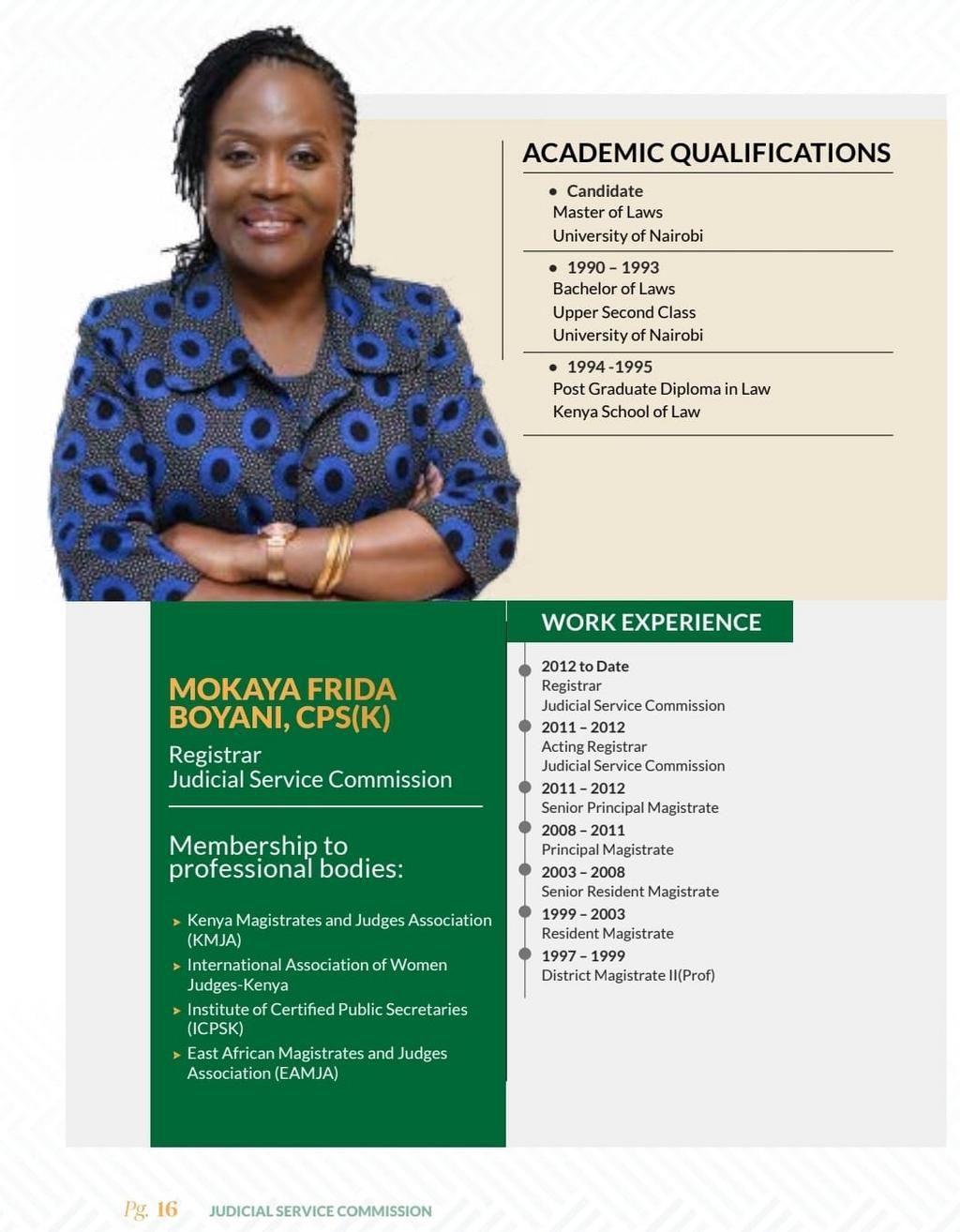 Frida Boyani Mokaya is the new Chief Registrar of the Judiciary.