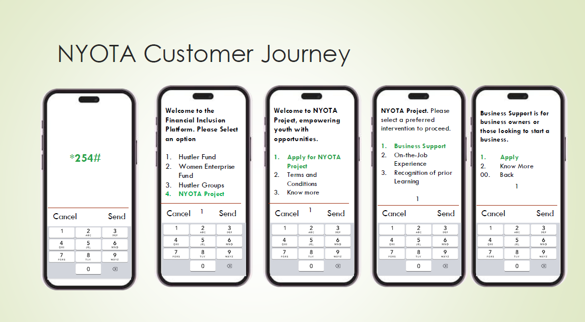 NYOTA is a multi-agency initiative implemented on a national scale by agencies such as the State Department for Youth Affairs & Creative Economy, MSEA, NSSF, and NITA. Its goals are to:
