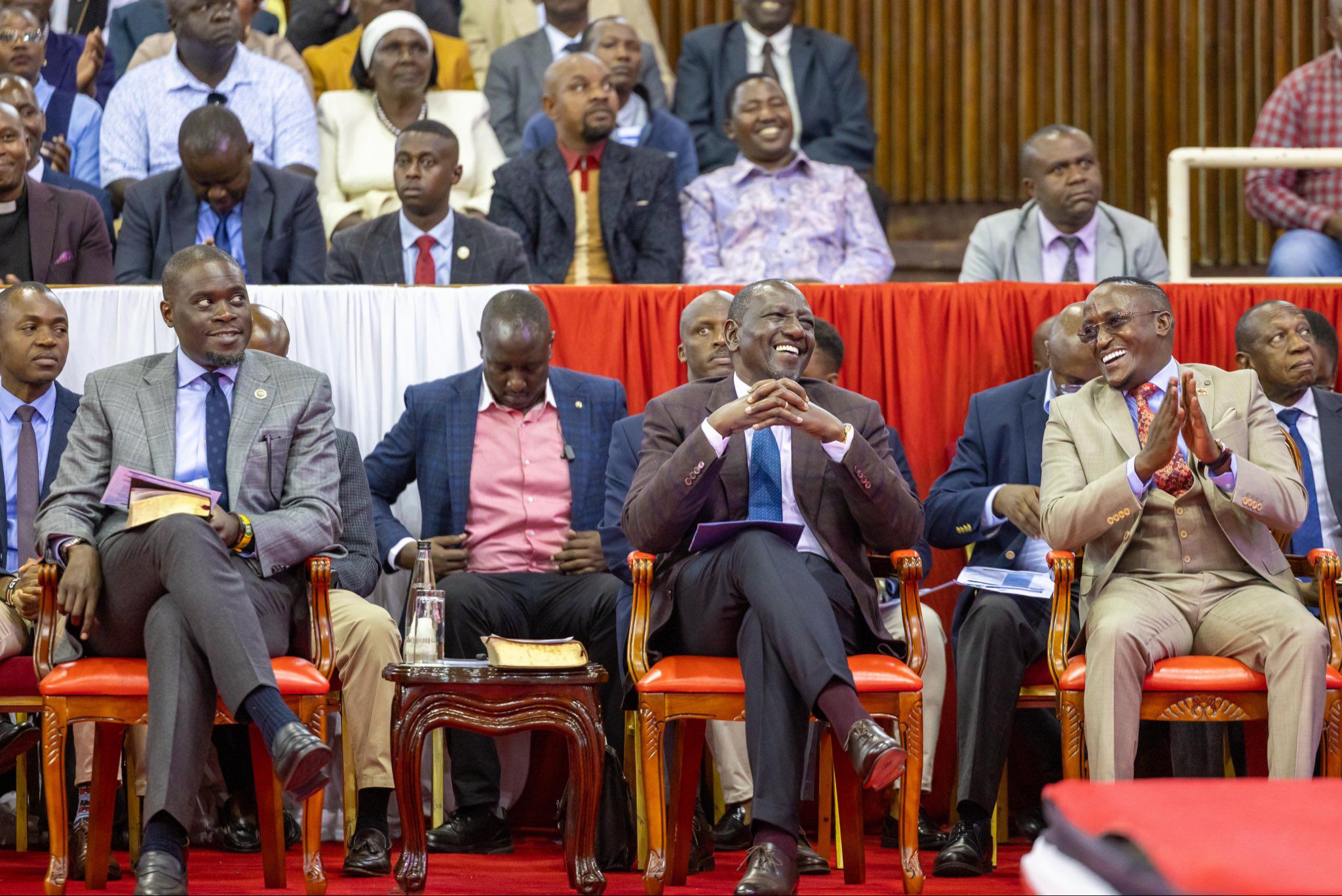 President William Ruto and other leaders who joined the congregation at the African Independent Pentecostal Church of Kenya (AIPCK) in a special service celebrating the inauguration of the Nairobi Archdiocese in Kasarani.