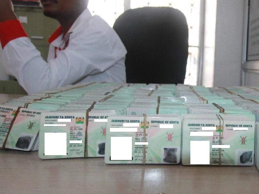 File image of national ID cards at a government office