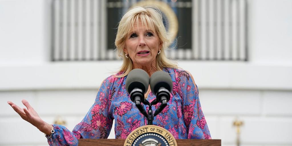 First lady Jill Biden speaks before introducing President Joe Biden at the White House Congressional Picnic on the South Lawn of the White House, Tuesday, July 12, 2022, in Washington