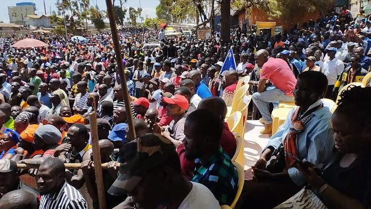 A section of the crowd that attended Azimio la Umoja rally at Kibra's Kamukunji grounds