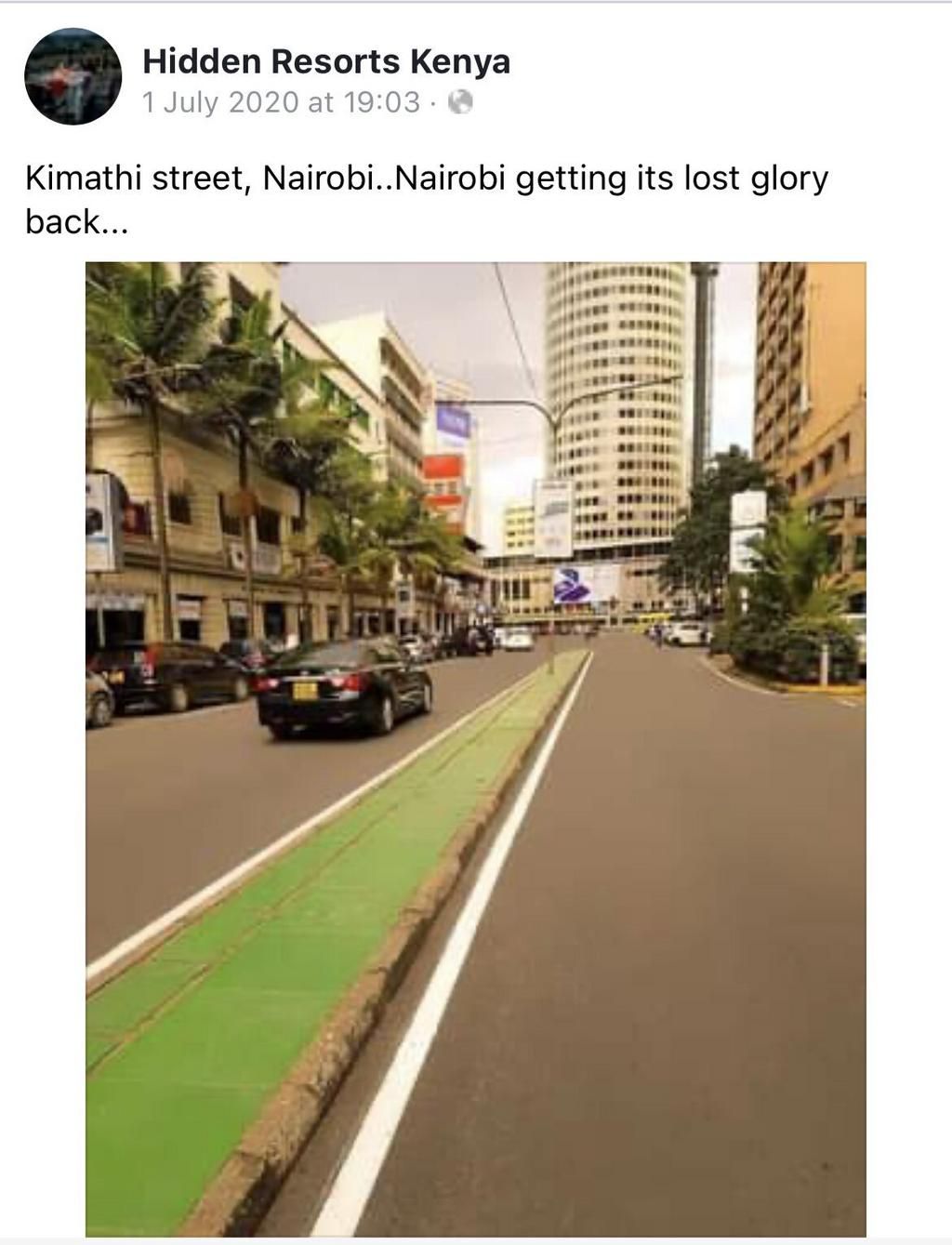 Kenyans on Twitter have had diverse reactions after discovering that Governor Sakaja used an outdated photo depicting a desolate and tidy Kimathi Street, with a black Toyota Mark X driving towards Hilton Hotel.