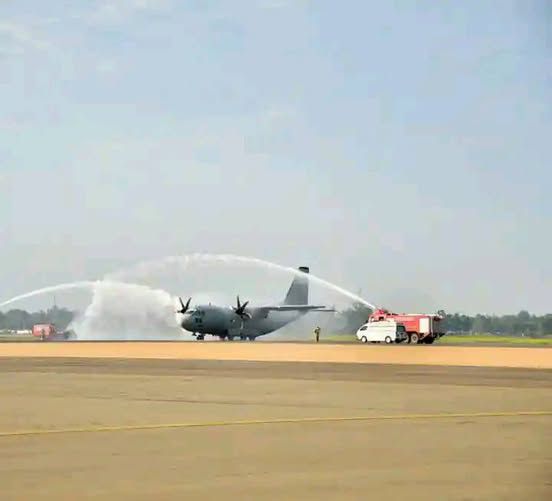 Military aircraft codenamed ENIGMA01 bearing the remains of the former Prime Minister lands in Kisumu and is accorded a water canon salute