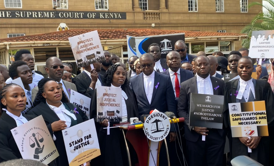 Members of the Law Society of Kenya (LSK) gathered outside the Supreme Court on Friday, January 12, to voice their support for the Judiciary, which has been under relentless criticism from President William Ruto.