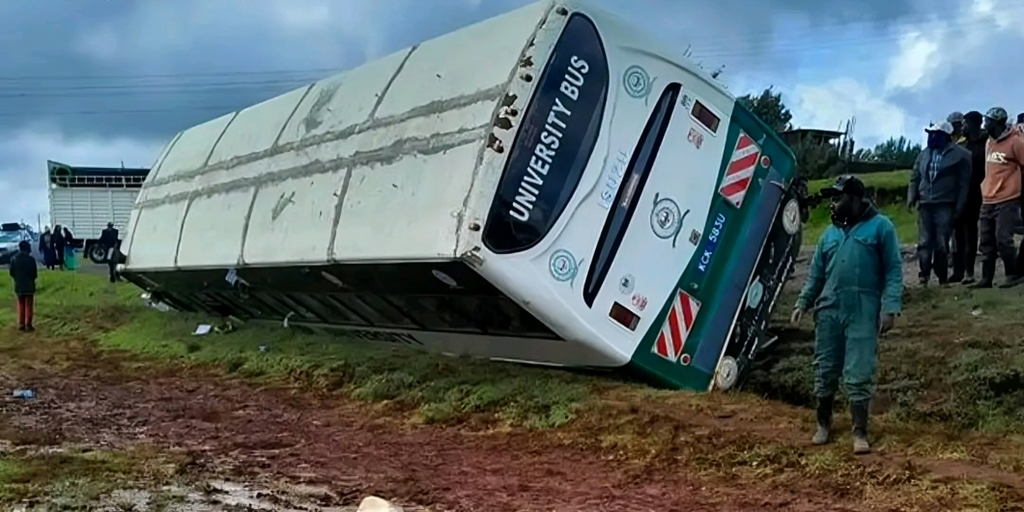 They were on their way to Mombasa for an academic excursion when their university bus crashed and flipped over, causing injuries.