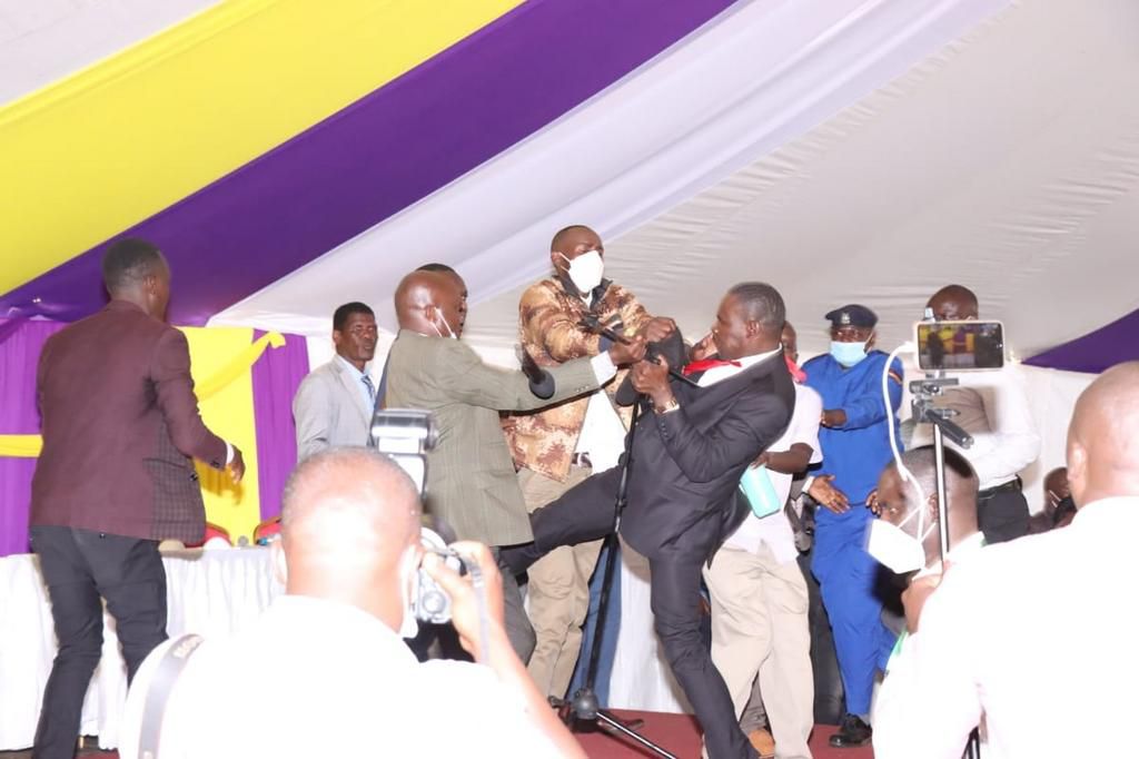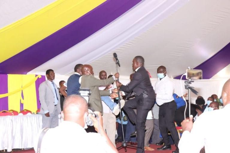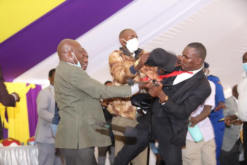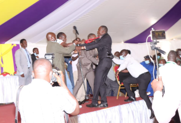The fight brought the burial ceremony to a stand-still with Kisii Governor James Ongwawe attempting to restore order.