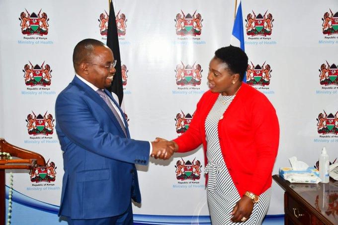 Chairperson of Pharmacy and Poisons Board Dr Charles Githinji and Health CS Susan Nakhumicha