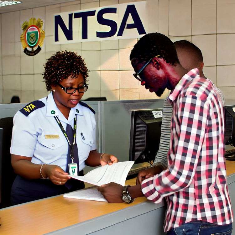 An AI-generated image of an NTSA officer assisting a motor vehicle owner with the ownership transfer process at an NTSA office