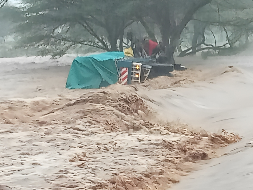 A Robinson R66 Turbine helicopter swooped in with daring precision to rescue the occupants of a lorry that was mercilessly washed away by floodwaters in Lerata, Samburu county on November 2, 2023