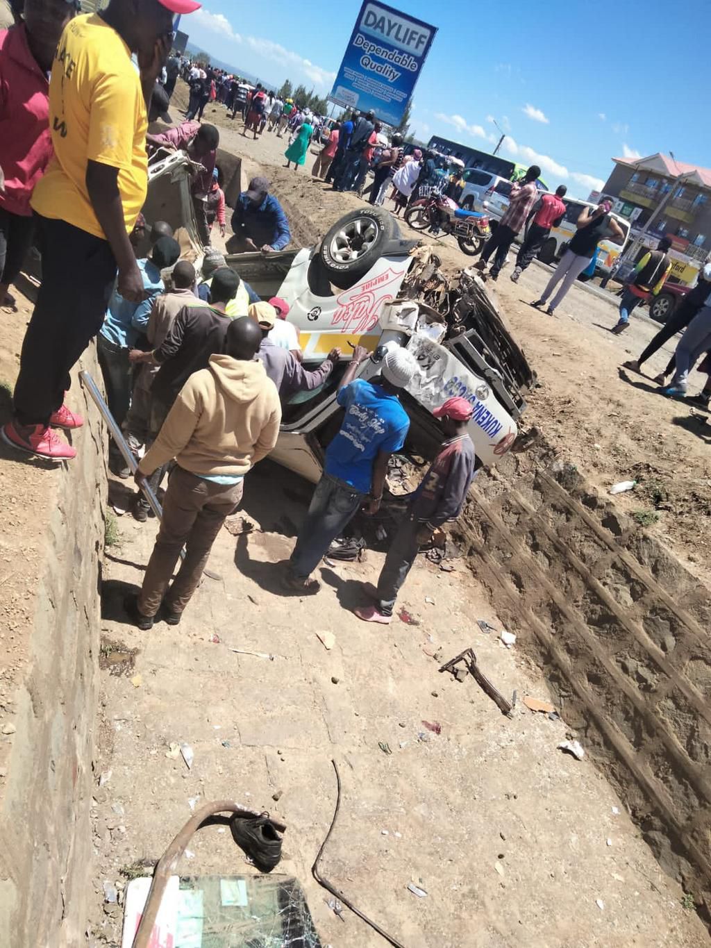 Eyewitnesses reported that the bus collided with a matatu that was joining the main road after picking up a passenger, causing the bus driver to lose control of the vehicle.