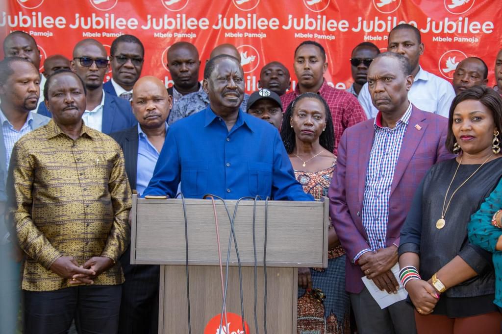 Raila Odinga addresses the media at the Jubilee Party headquarters