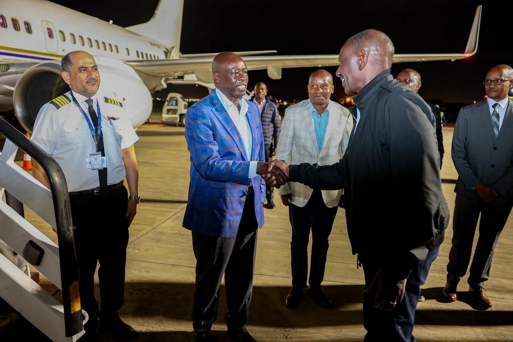 President William Ruto greeting Deputy President Rigathi Gachagua before leaving for the U.S.