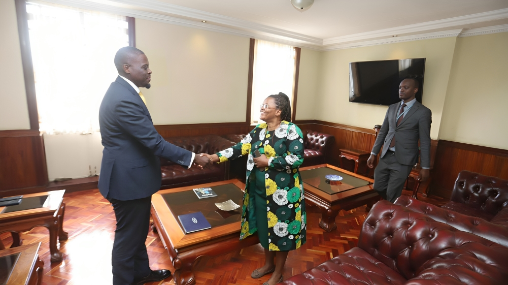 Nairobi Governor Johnson Sakaja with Ambassador of Burundi to Kenya Ntahonkuriye Emmernece at City Hall, Nairobi
