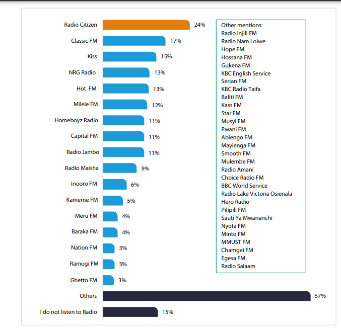 Citizen TV emerged as the preferred television station for offline news, while Radio Citizen claims the top spot among radio stations.