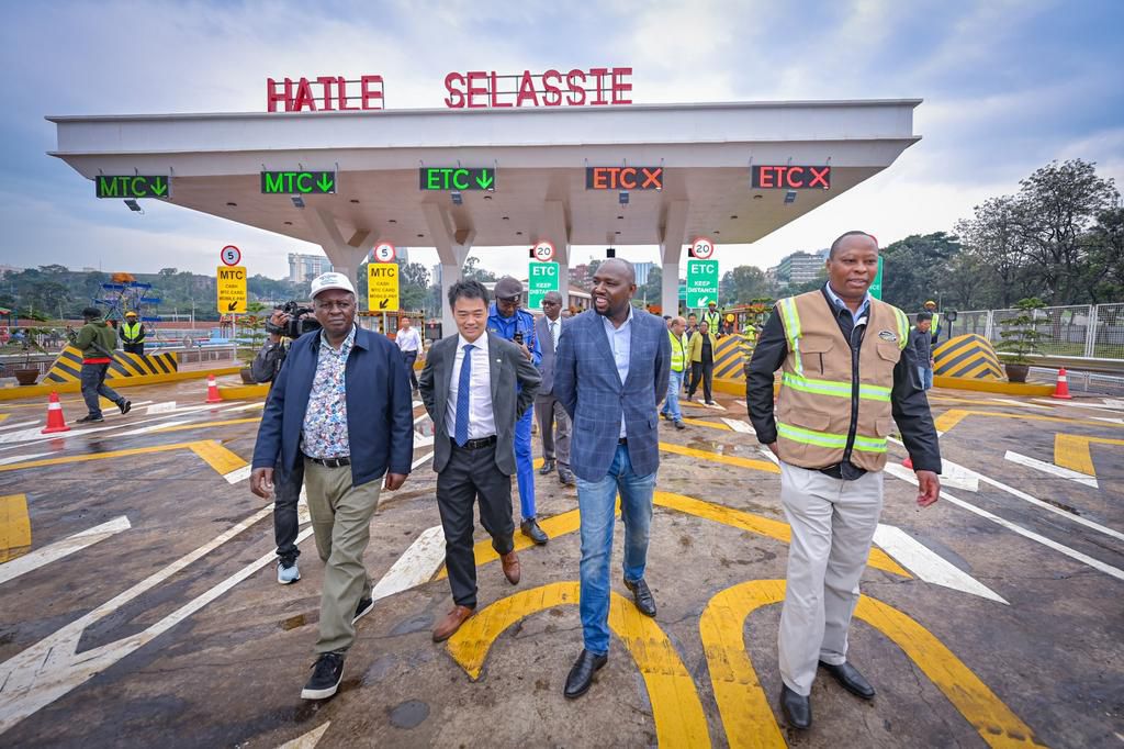 Transport CS Kipchumba Murkomen commissioning the newly constructed Nairobi Expressway Haile Selassie Exit Plaza, opening it up for use by the public.