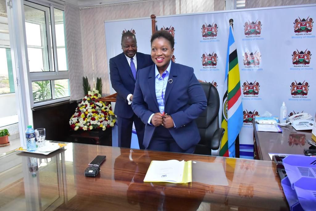 Health Cabinet Secretary Susan Wafula Nakhumicha with her predecessor Mutahi Kagwe