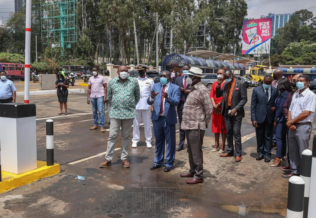 President Uhuru Kenyatta and former Prime Minister Raila Odinga have made an impromptu inspection of the Green Park Bus Terminus in Haile Selassie Avenue in Nairobi.