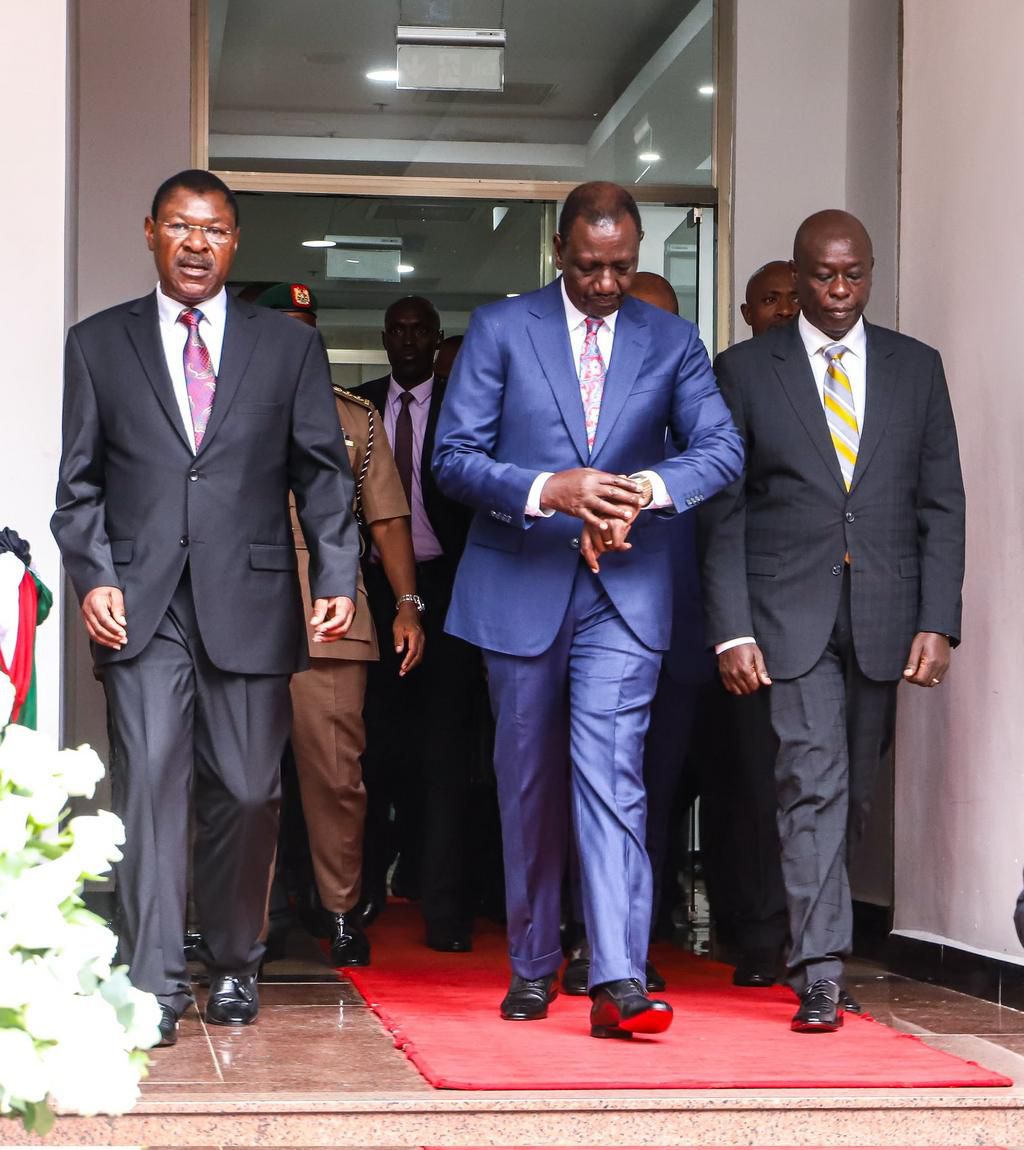 President William Ruto, National Assembly Speaker Moses Wetangula and Deputy President Rigathi Gachagua during a tour of Bunge Towers on April 25, 2024