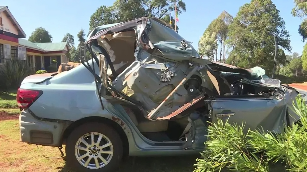 Wreckage of the Toyota Premio that Kelvin Kiptum was driving