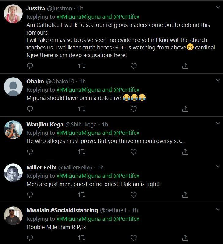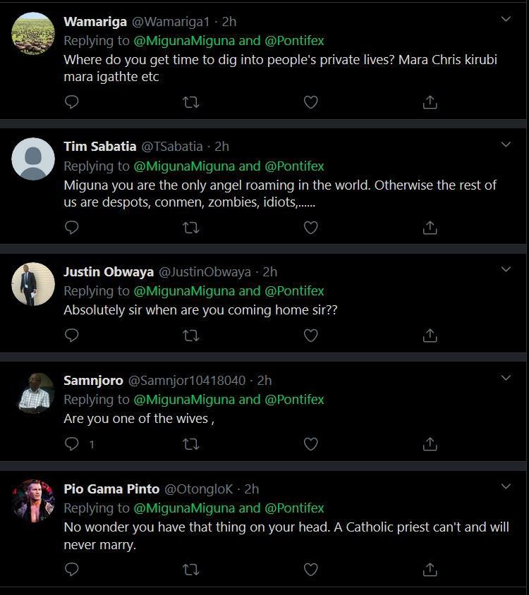 Miguna in his tribute asked the Pope to allow Catholic Priests to marry, as he claimed that the rested Cleric had wives and children, a move that prompted Netizens to ask him to produce evidence if he had any, to which he refused telling them off.
