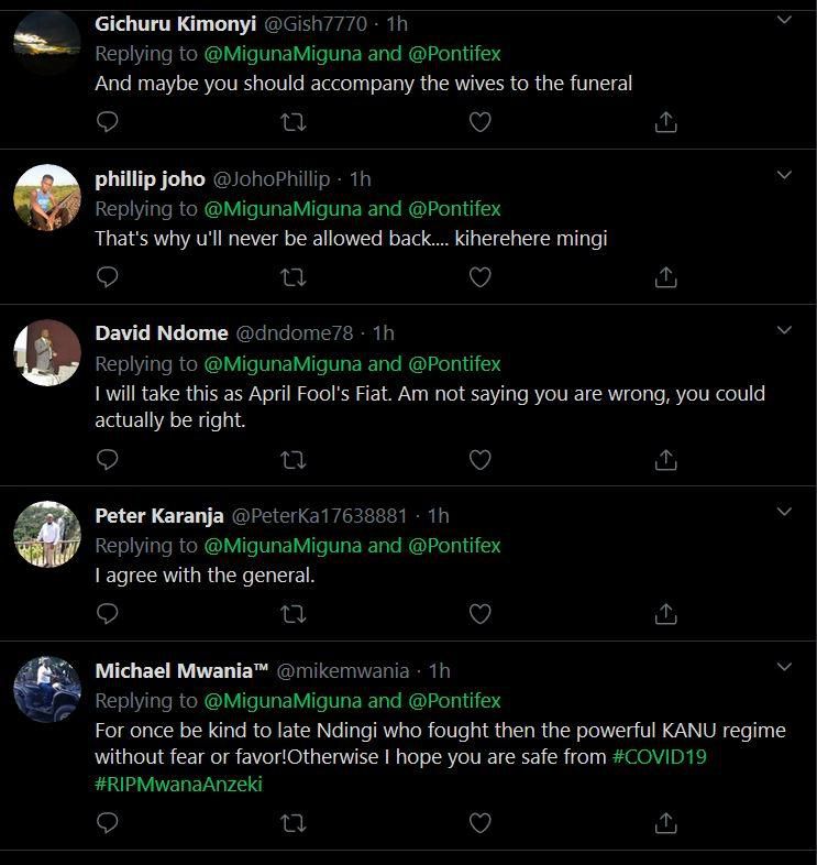 Others said that he was being inconsiderate and disrespectful to the dead, while some linked Miguna’s words to April Fool’s day.