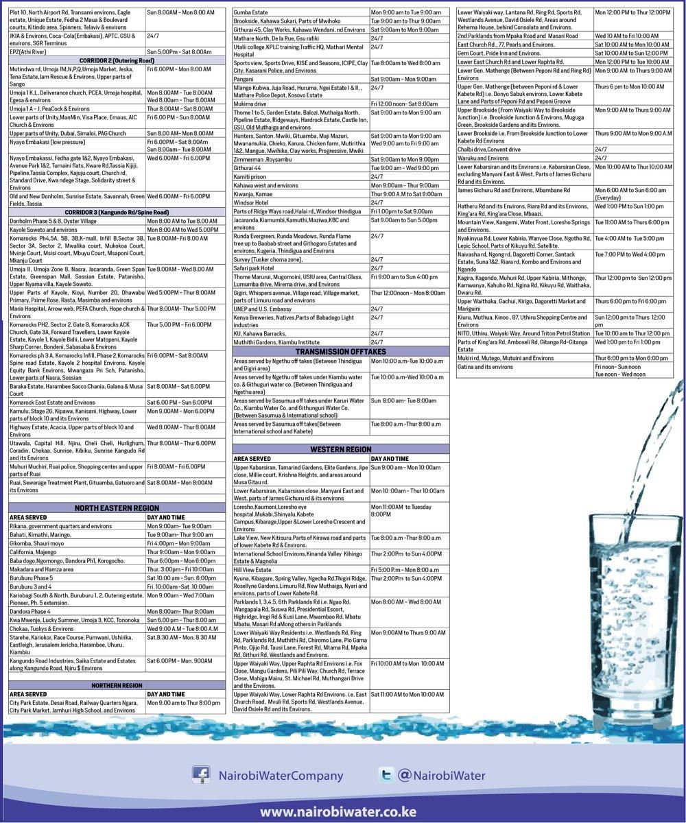 The Nairobi City Water and Sewerage Company Limited (NCWSC) have updated the Equitable Water Distribution Program that will see residents go for days without water in their taps.