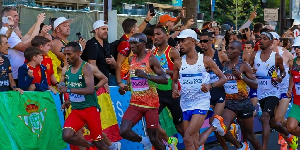 Eliud Kipchoge among other athletes at the Paris Olympics, August 10
