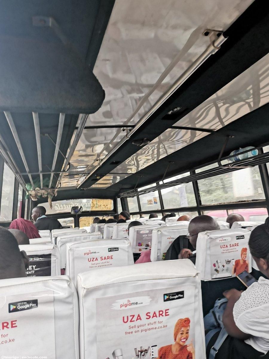Passenger takes photo inside a Route 111 (Ngong, Karen) matatu that complied with maximum of 60 per cent capacity to facilitate social distancing