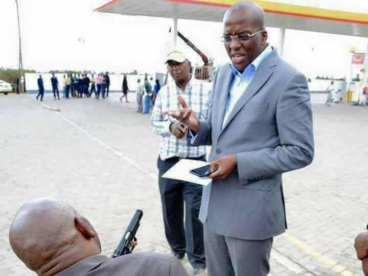 Former Senator Paul Njoroge wielding his gun during the altercation with Polycarp Igathe