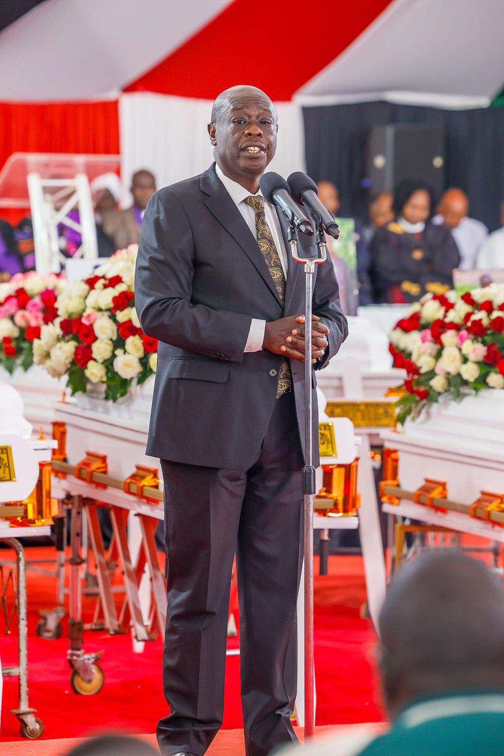 Deputy President Rigathi Gachagua at the Funeral ceremony for 21 children who died in Hillside Endarasha Academy