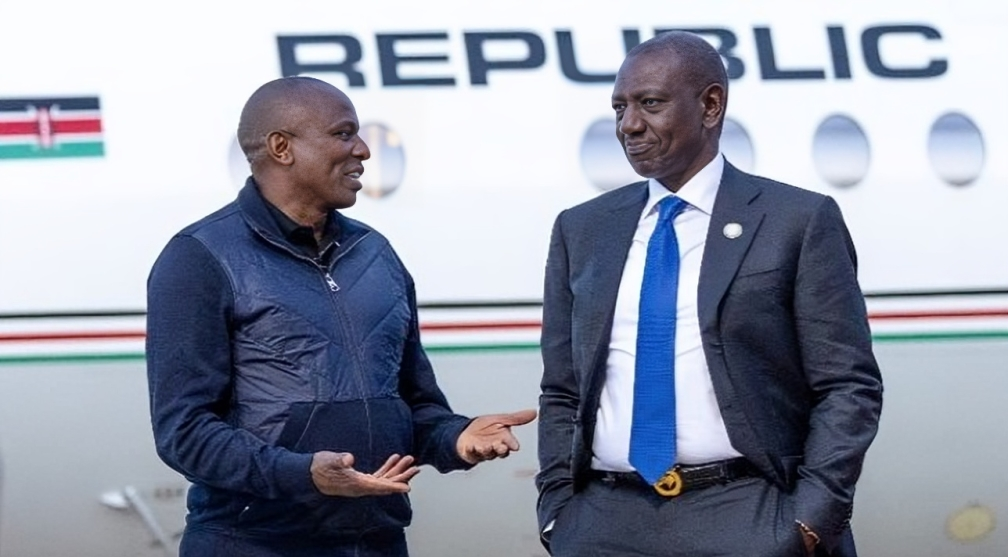 President William Ruto and Majority Leader Kimani Ichung'wa at JKIA on January 21, 2024