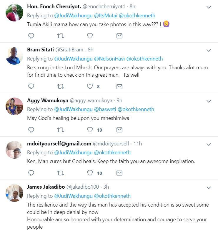 Fridah Gacheri added: "Quick recovery Hon Ken, you are a great inspiration to many in Kenya. May the Lord remember your good works."