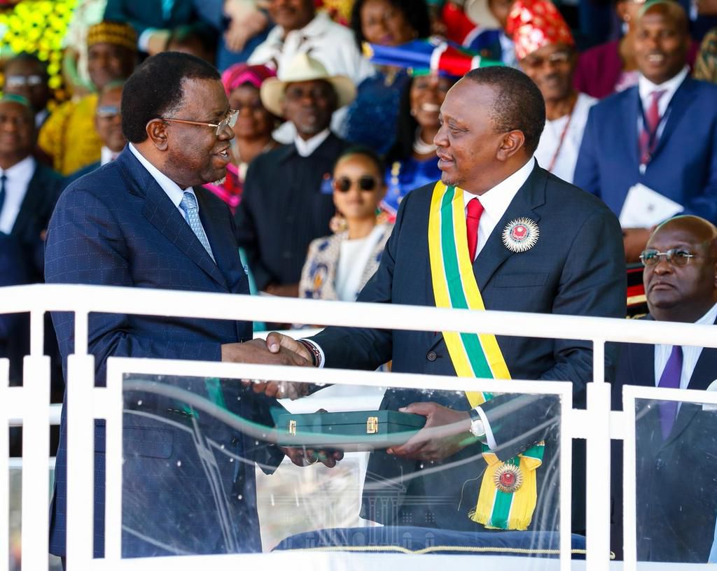President Uhuru Kenyatta was on Thursday given the Grand Master of the Order of the Most Ancient Welwitschia Mirabilis while on his visit to Namibia.
