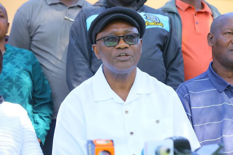 Retired Governor James Ongwae addressing the media on February 13, 2023