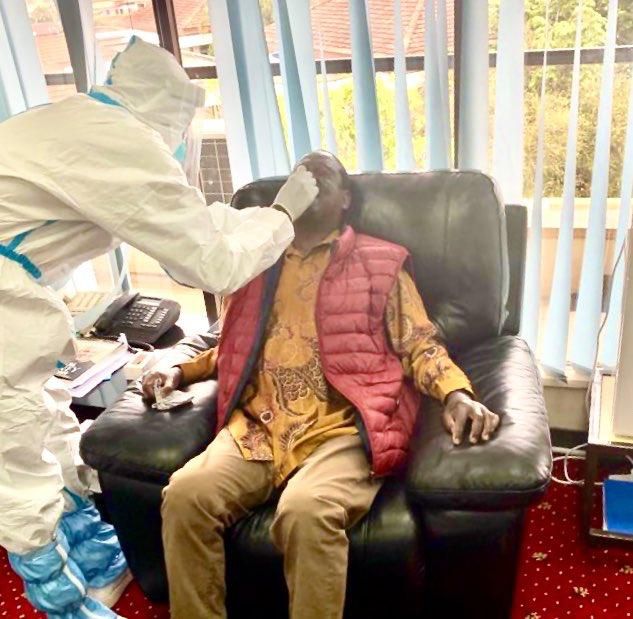 Former Prime Minister Raila Odinga when he took a Covid-19 test at the Mbagathi Hospital