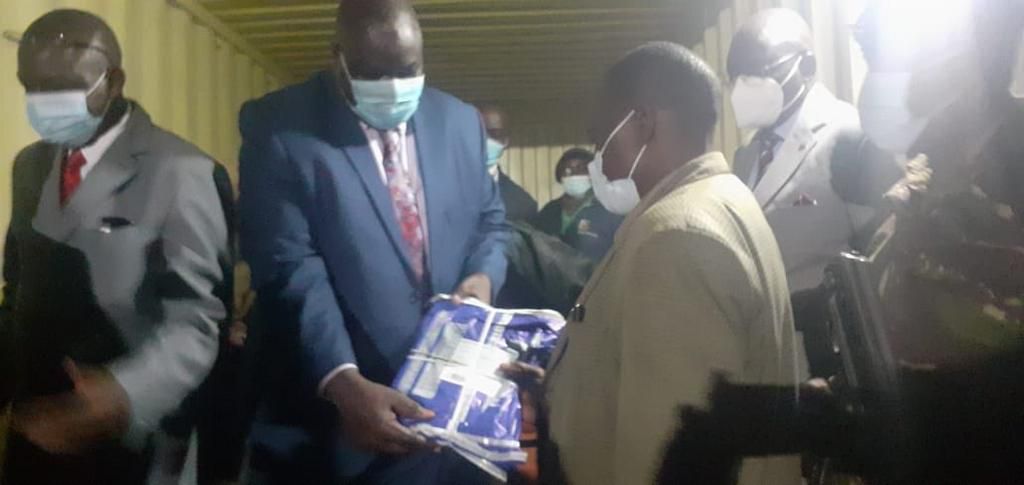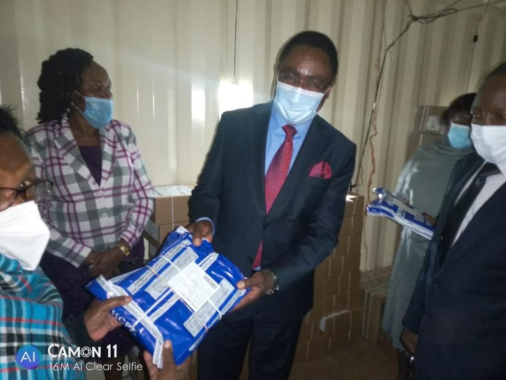 University Education and Research PS Simon Nabukwesi supervises KCPE 2020 examination materials distribution at Westlands container